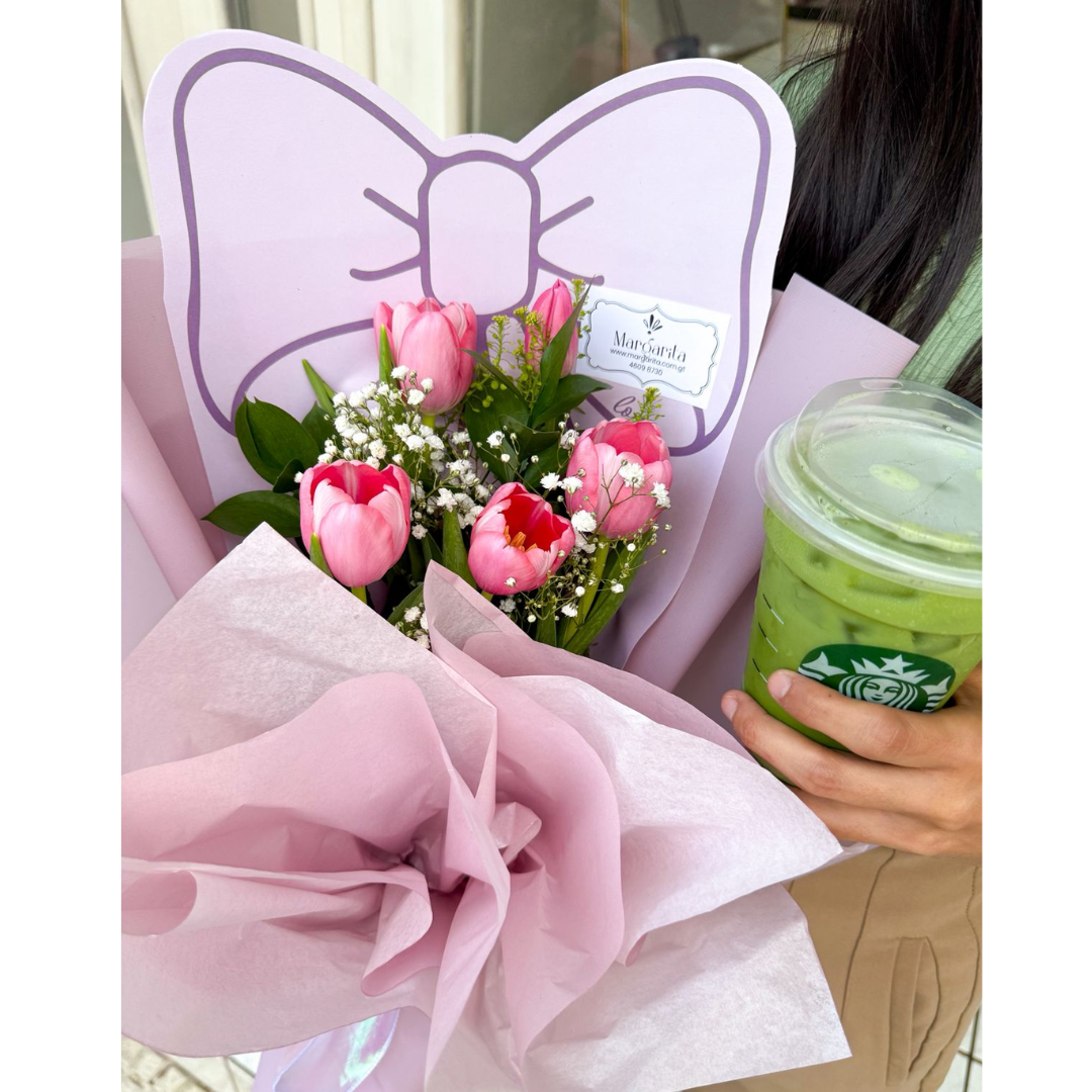 Hermoso detalle de 5 tulipanes en tono rosa (puedes consultar por WhatsApp disponibilidad de otros colores)