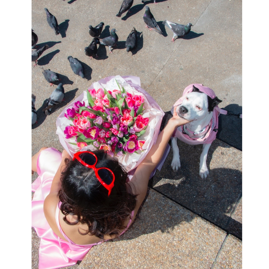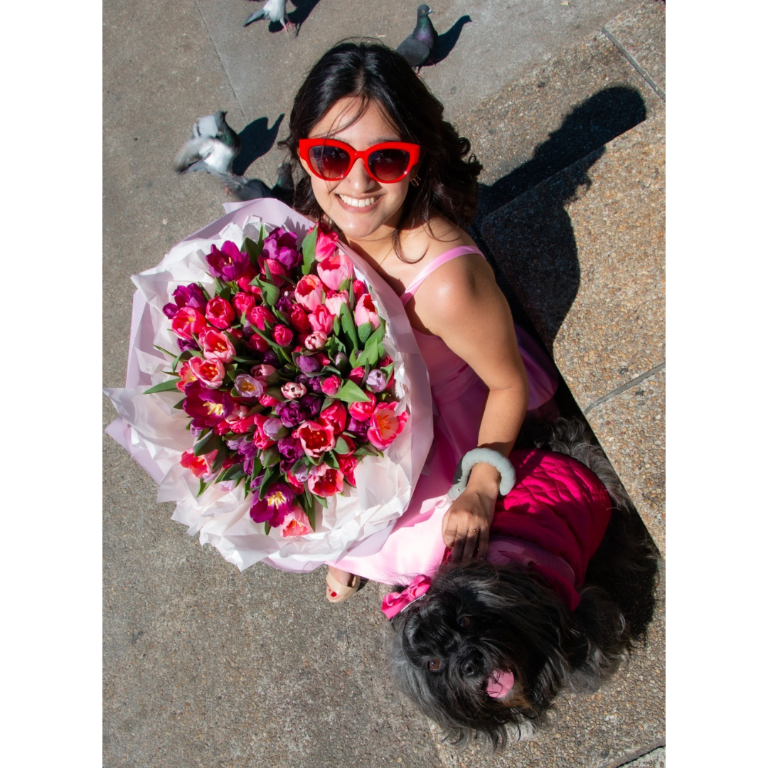 Ramo de 100 tulipanes de colores a tu selección y disponibilidad, Moña y tarjeta.